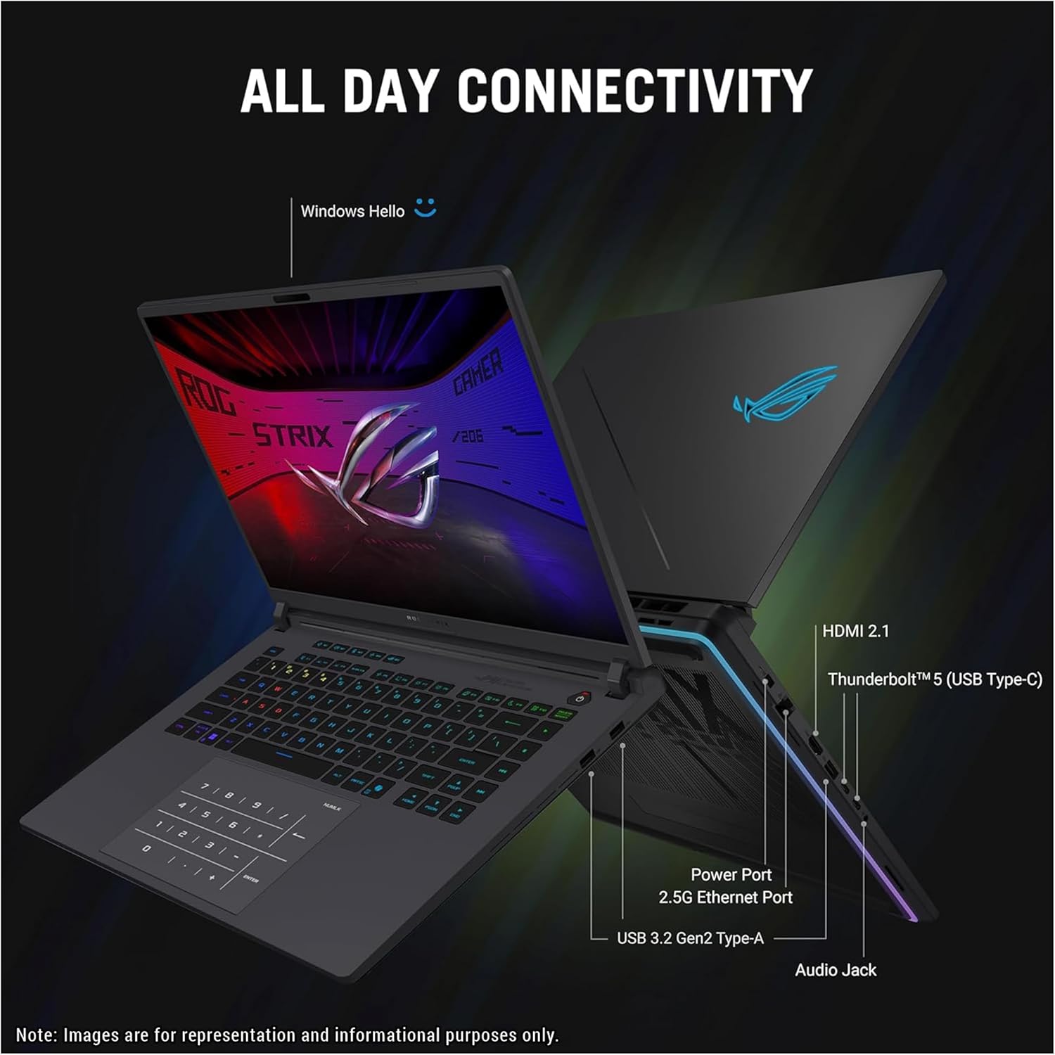 NOTEBOOK ASUS ROG STRIX G16 EXTREME GAMING LAPTOP / MODELO (2025) G615LW-AS96 / PANTALLA 16” WQXGA ( 2560 x 1600 ) 240HZ / PROCESADOR ULTRA 9 275HX 24 CORES HASTA 5.4GHz / CAPACIDAD DISCO ESTADO SÓLIDO SSD 1TB PCIe 4.0 ( 1000 GIGAS, EXPANSIBLE, CONSULTAR ) / MEMORIA RAM 32GB DDR5 5600MHz (EXPANSIBLE, CONSULTAR) MÁXIMA VELOCIDAD Y FRECUENCIA DISPONIBLE EN EL MERCADO / PLACA GRÁFICA DE VIDEO DEDICADA NVIDIA GEFORCE RTX 5080 16GB GDDR7 / WINDOWS 11 HOME / COLOR ECLIPSE GRAY / TECLADO RETROILUMINADO RGB EQUIPO ABSOLUTAMENTE NUEVO EMBALAJE Y SELLADO DE FÁBRICA, CONDICIÓN NEW FACTORY SEALED GARANTIA OFICIAL DEL FABRICANTE POR 12 MESES.
